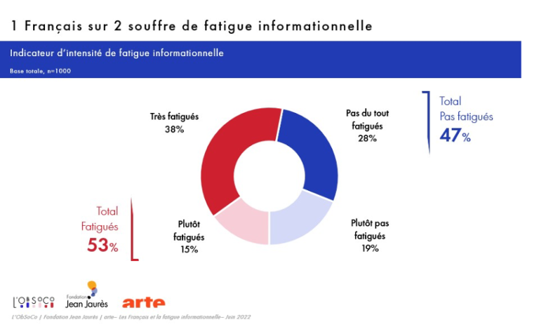 À force d’être exposés à ces informations en continu, selon une étude de l’Obsoco, d’Arte et de la Fondation Jean-Jaurès, un Français sur deux serait touché par une forme de fatigue informationnelle.